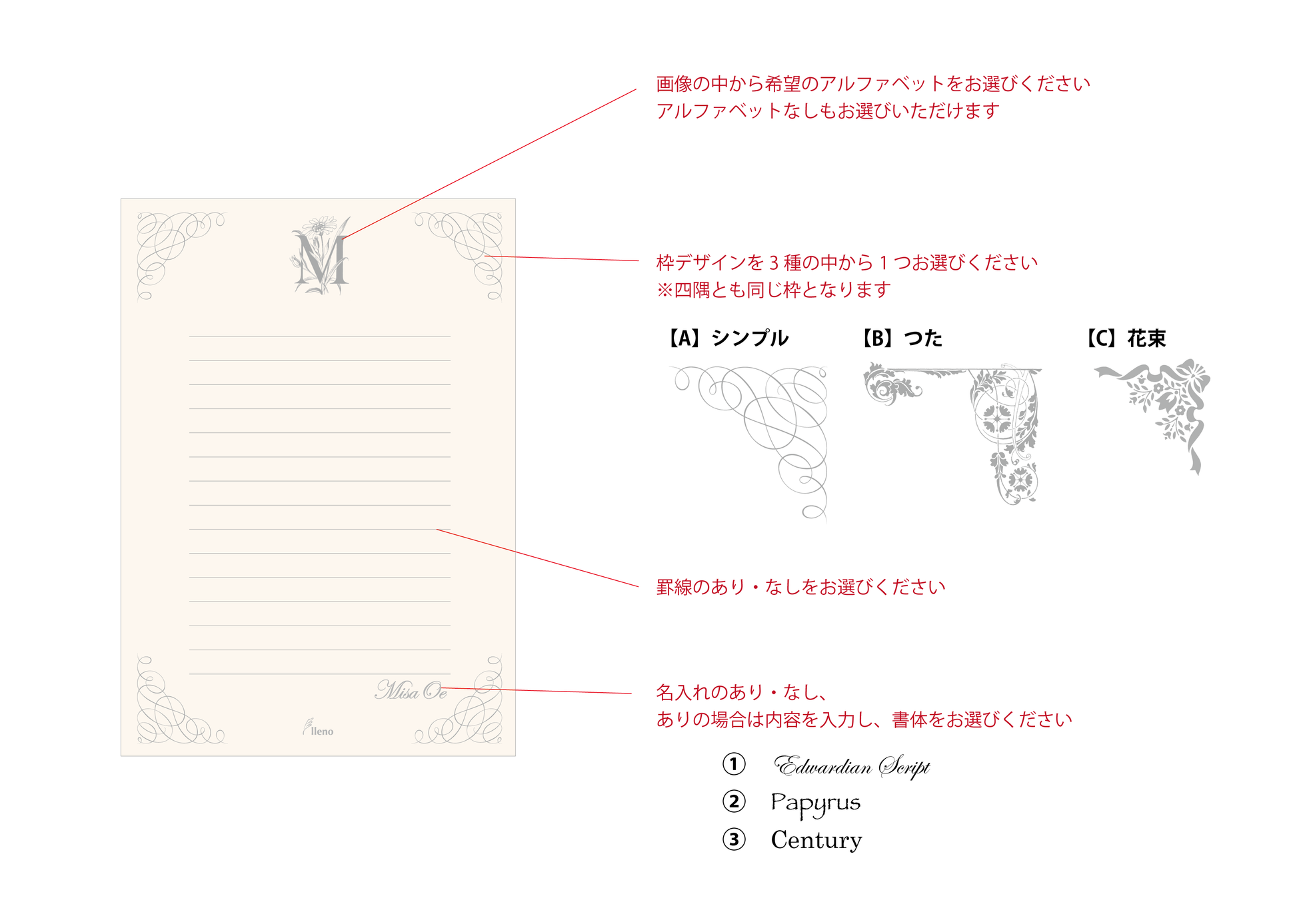 名入れも出来るセミオーダータイプのオリジナル便箋です。