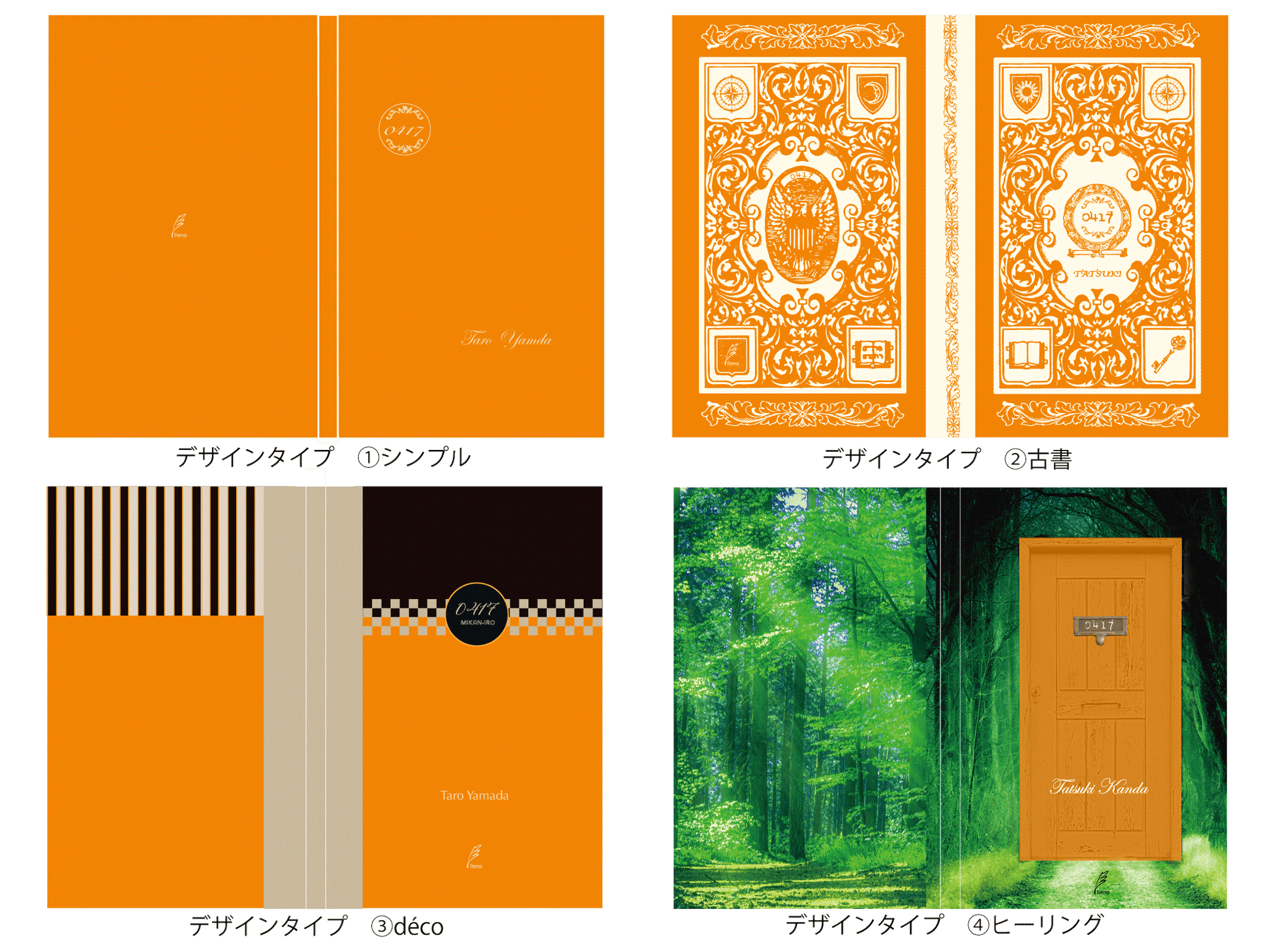 絞りの皮革のような味わいの紙に古書風のデザイン。