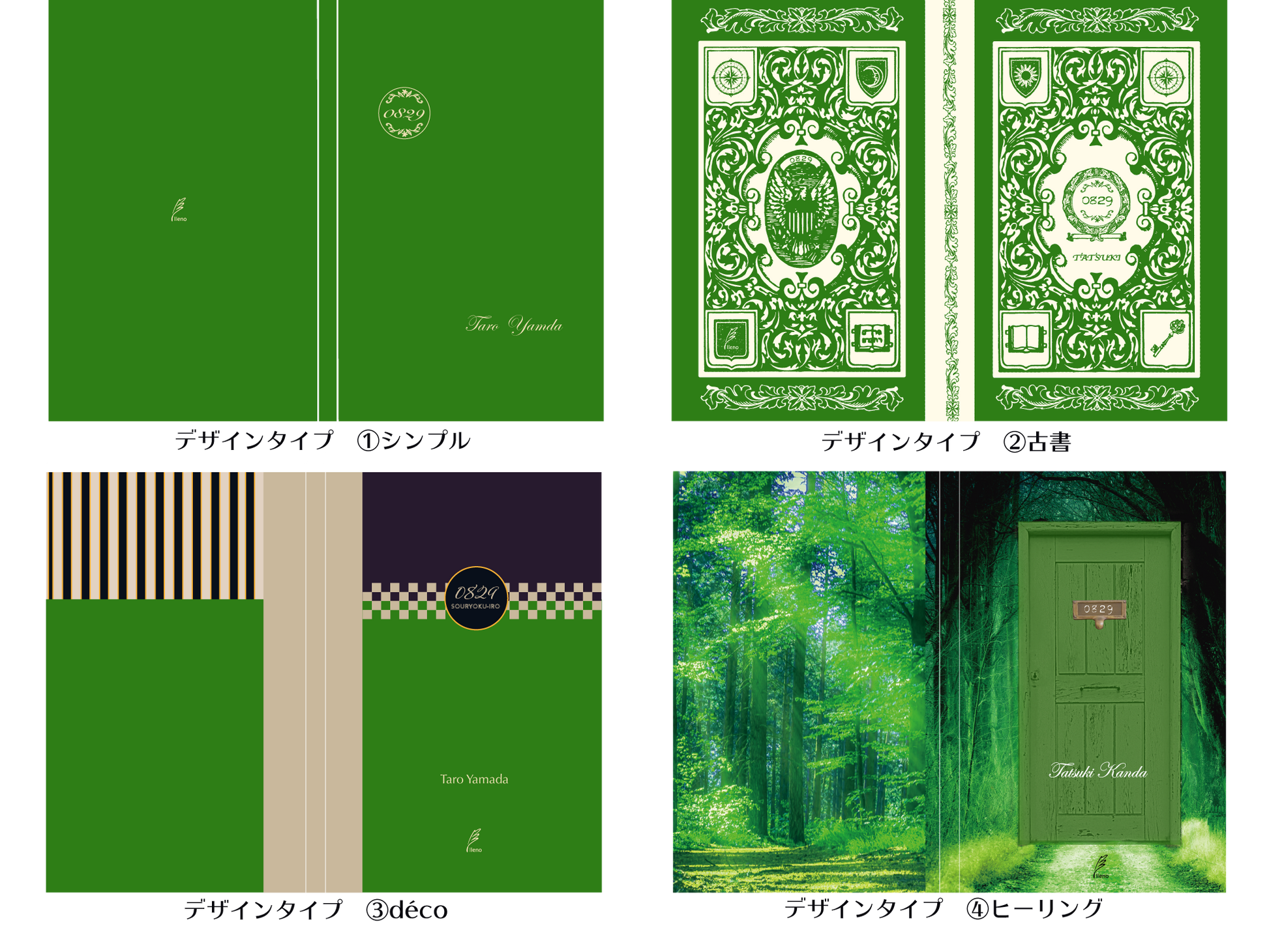 絞りの皮革のような味わいの紙に古書風のデザイン。