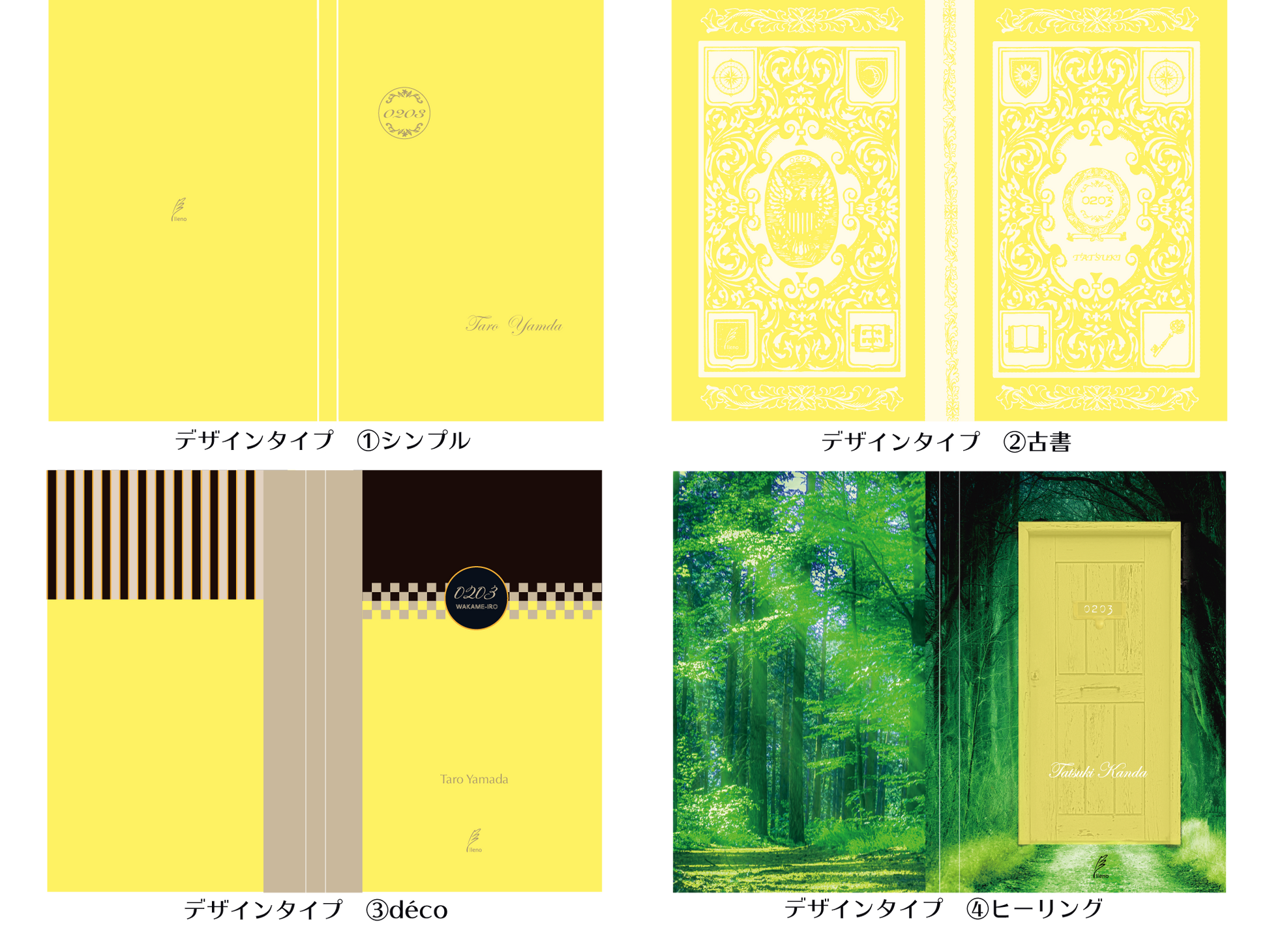 絞りの皮革のような味わいの紙に古書風のデザイン。