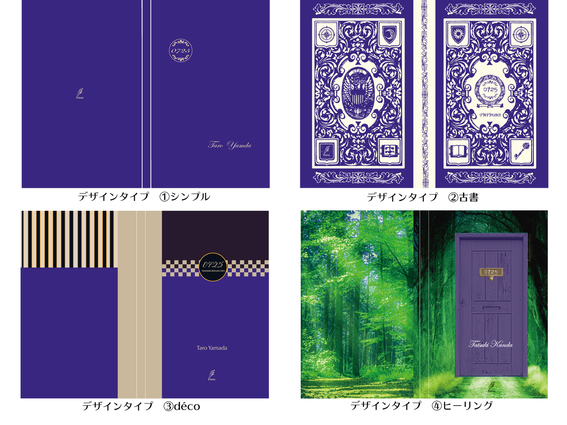 絞りの皮革のような味わいの紙に古書風のデザイン。