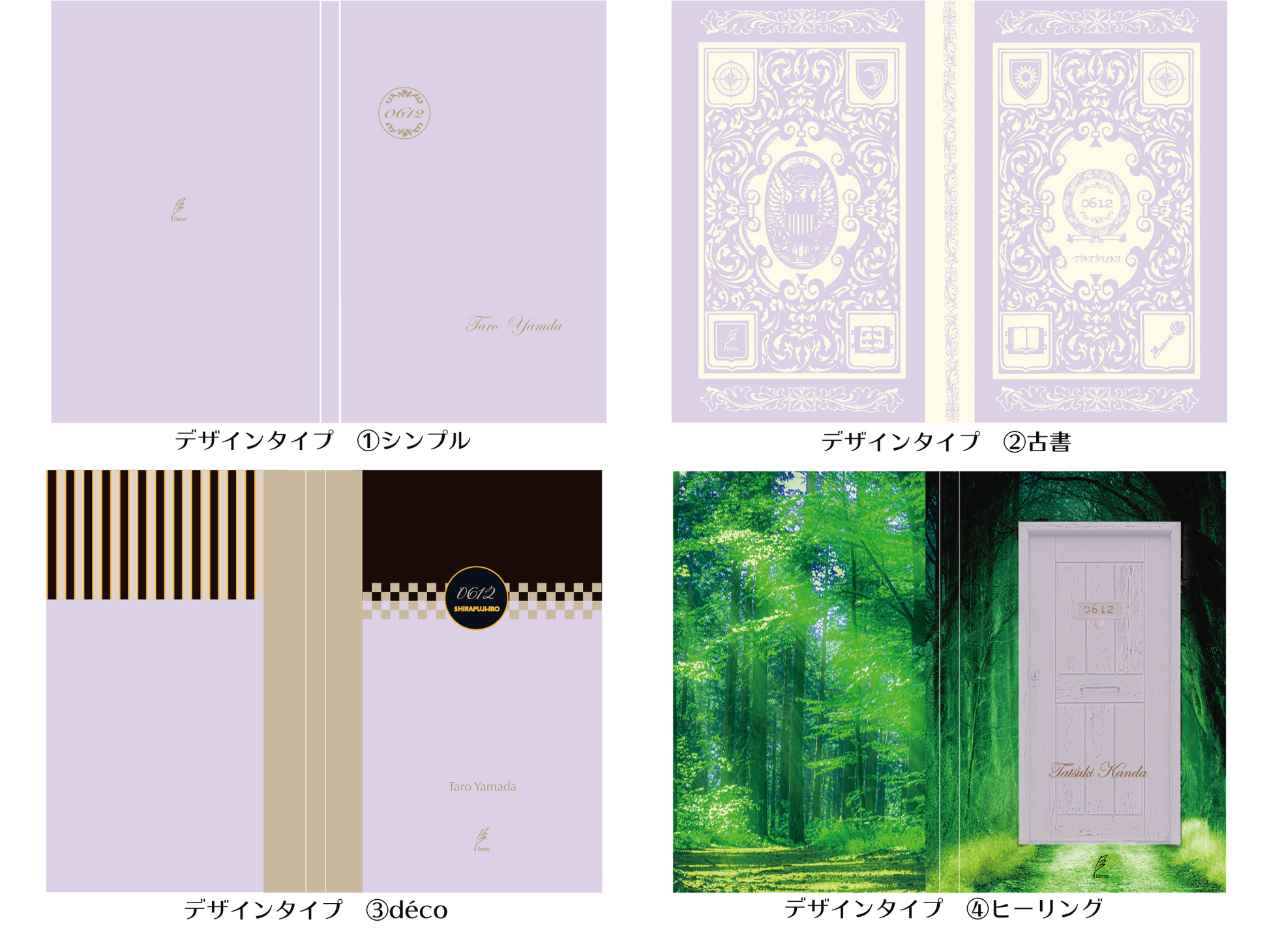 絞りの皮革のような味わいの紙に古書風のデザイン。