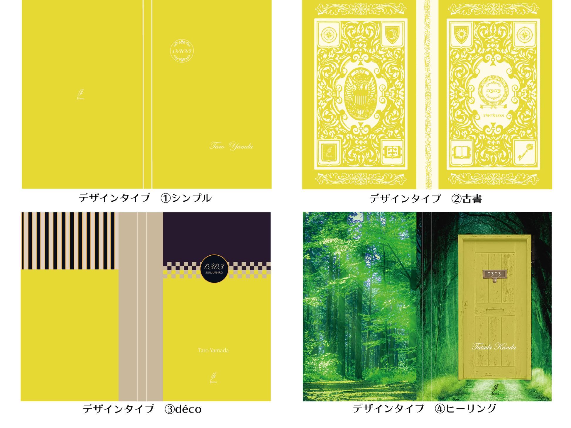 絞りの皮革のような味わいの紙に古書風のデザイン。